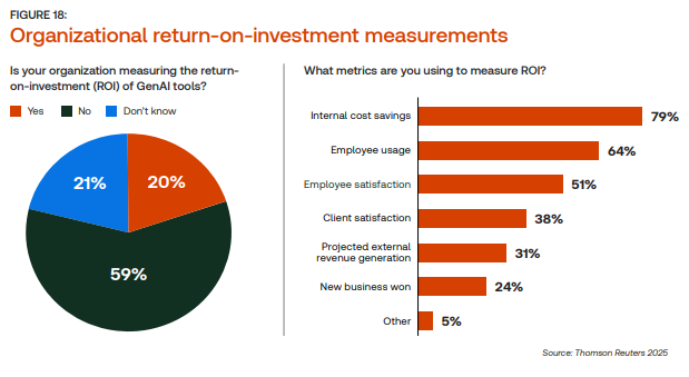 A pesquisa da Thomson Reuters traz uma visão clara de como as empresas estão lidando com essa questão. A maioria já reconhece a importância de acompanhar indicadores específicos, mas os critérios variam, e revelam muito sobre a maturidade de cada organização no uso da GenAI.
